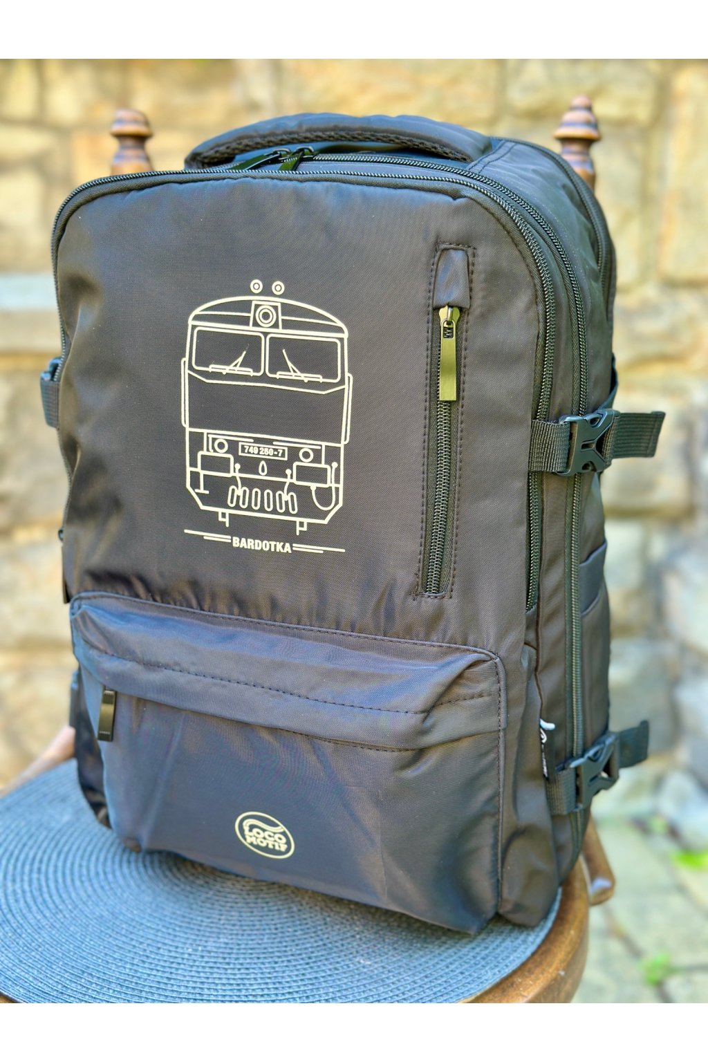 Voděodolný palubní batoh z ekologického RPET polyesteru, navržený pro pohodlné cestování nejen vlakem. Prostorná hlavní přihrádka pojme vše potřebné na cestu, včetně polstrované kapsy pro 16" notebook, ideální pro práci či zábavu během jízdy.