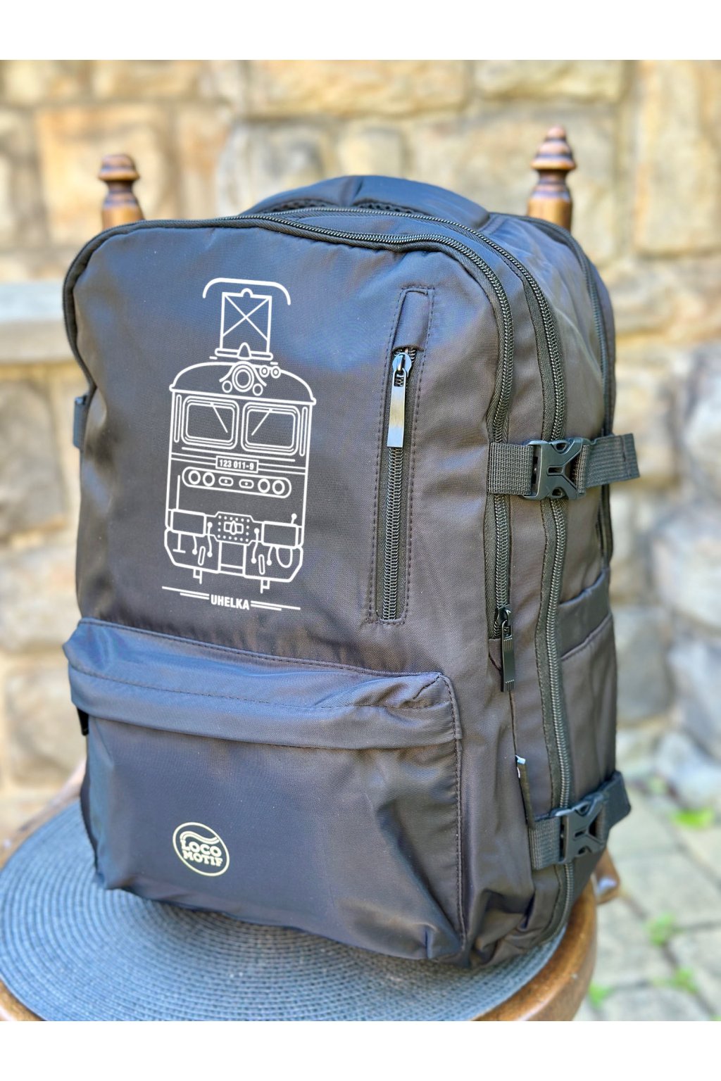 Voděodolný palubní batoh z ekologického RPET polyesteru, navržený pro pohodlné cestování nejen vlakem. Prostorná hlavní přihrádka pojme vše potřebné na cestu, včetně polstrované kapsy pro 16" notebook, ideální pro práci či zábavu během jízdy.