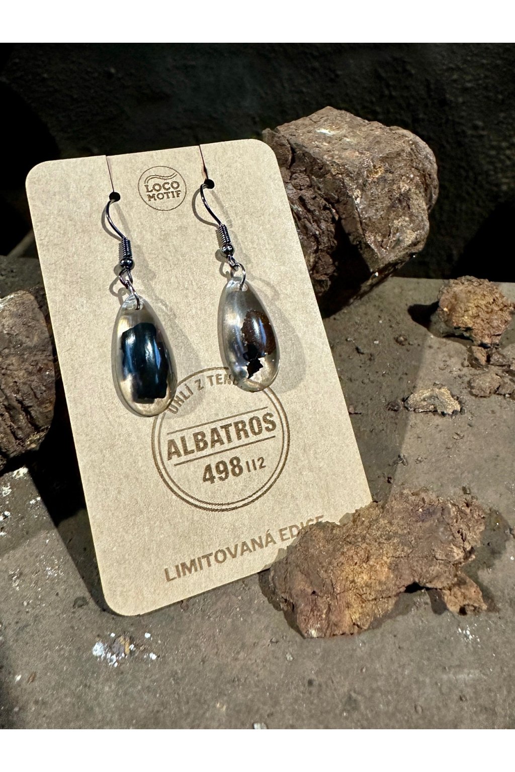 Nechte perly spát a diamanty ztratit lesk. V uších noste příběh – uhlí z legendárního Albatrosa 498.112, které po třicet let dřímalo v jeho tendru.