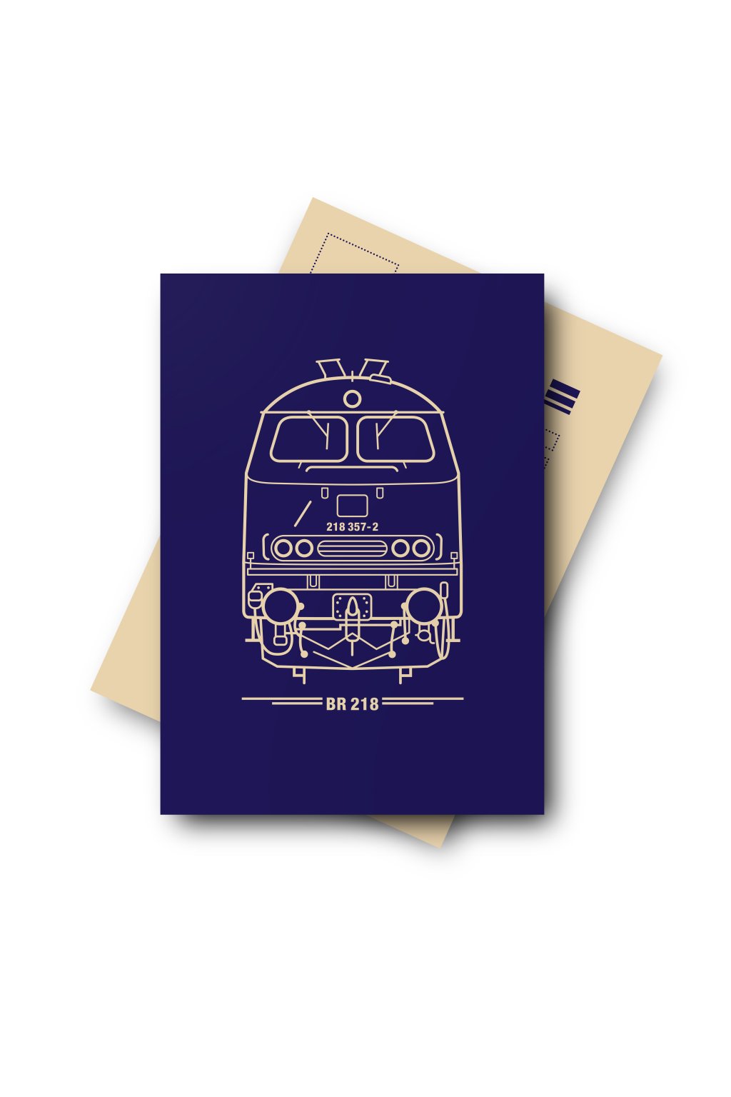 Klasický pohled. Z jedné strany motiv vlaku z druhé strany pohled připravený pro text.