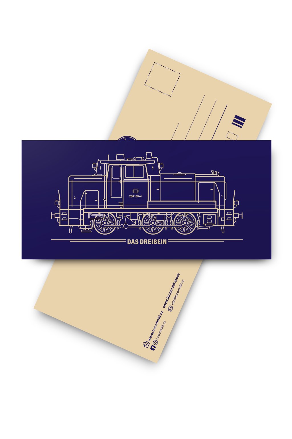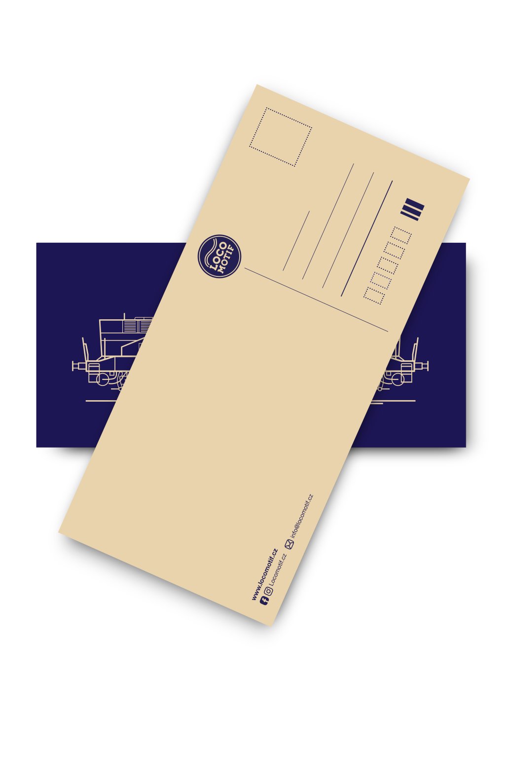 Klasický pohled. Z jedné strany motiv vlaku z druhé strany pohled připravený pro text.