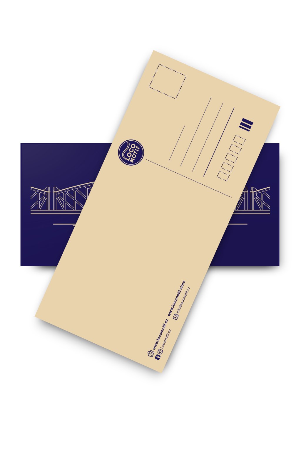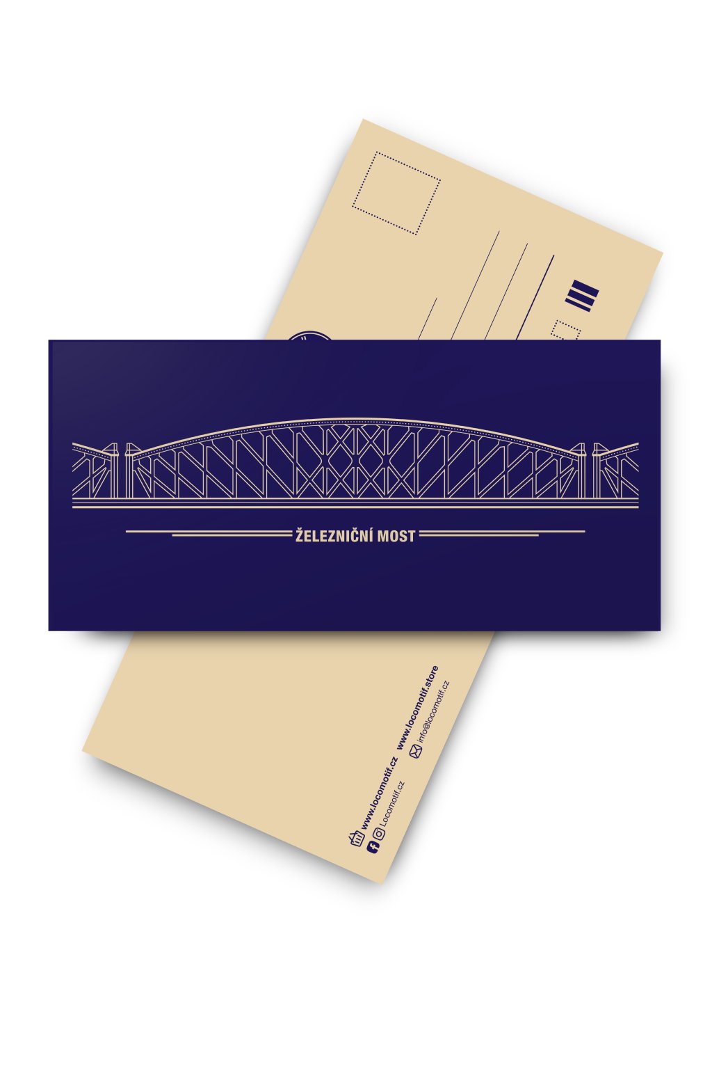 Klasický pohled. Z jedné strany motiv železničního mostu z druhé strany pohled připravený pro text.