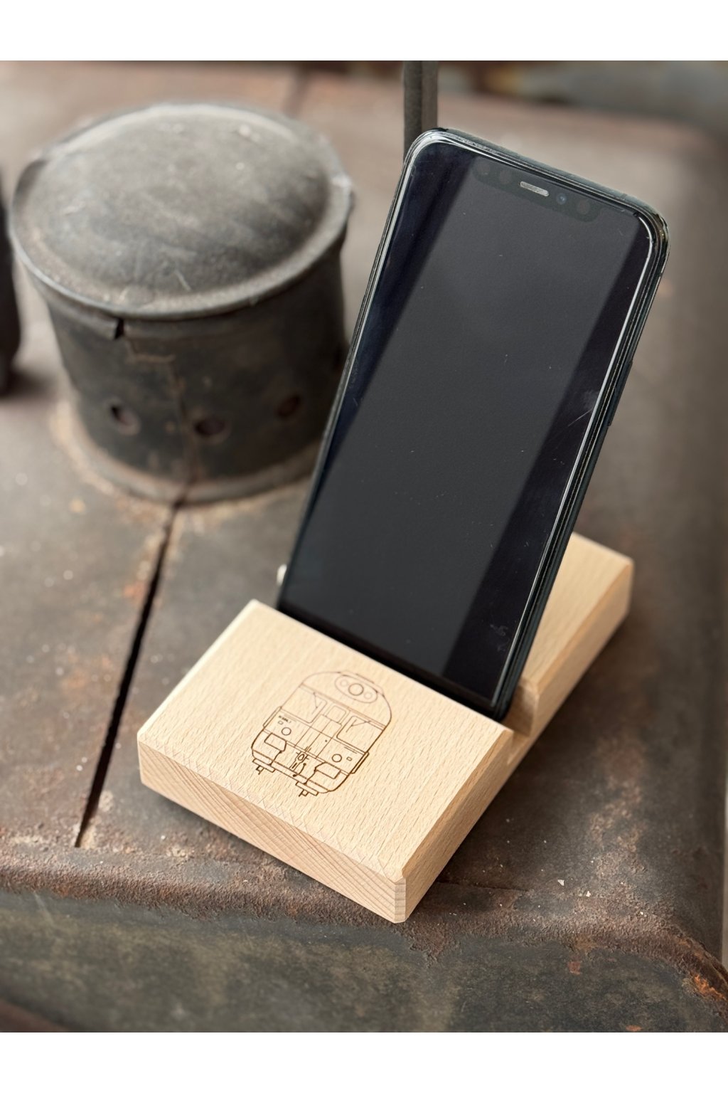 Jednou se nám v Locomotif zjevil čtrnáctiletý kluk Ondra a přinesl tyto dřevěné stojánky na mobil. Prý se učí u táty v truhlářské dílně. Prý jestli by se nám v krámu nelíbily. Líbily a moc, ale hlavně se nám líbí on.